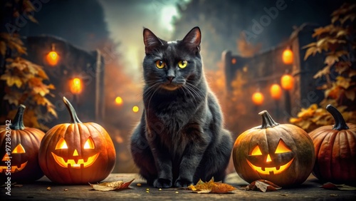Fearsome black cat Halloween thriller