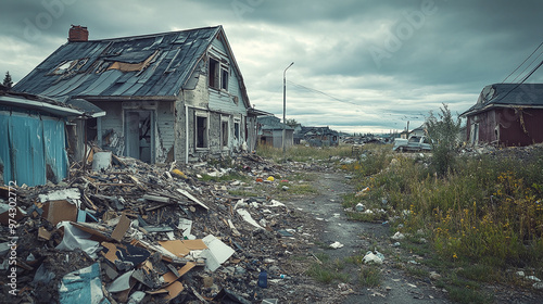 Closed houses, destroyed houses, abandoned houses with broken windows, houses of lonely elderly people, were illegal dumping occurs, destroyed houses