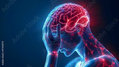 Medical graphic of woman's head with red highlighted area representing sinus headache pain