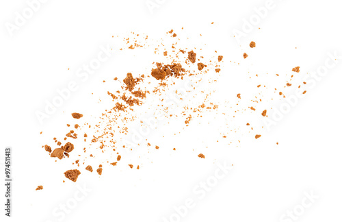 The pile of cake crumbs, cookies flying, grunge graphic overlay element isolated on a transparent background