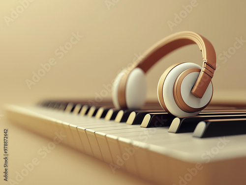 słuchawki nauszne na klawiaturze instrumentu.
