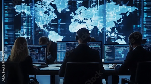 Team of cybersecurity professionals analyzing data during a cyber attack incident.