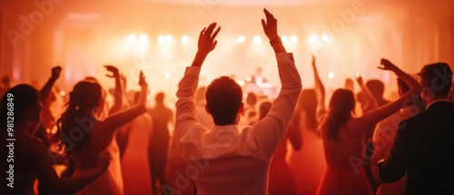 A Vibrant Wedding Celebration: Guests of All Ages Dancing Joyfully Under Elegant Lights
