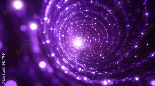 An abstract pattern of stage lights spirals around a central point, with deep purple hues creating a dramatic and intense mood. The lights converge and radiate outward, producing a mesmerizing