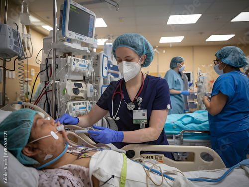 Enfermera profesional de la salud en una unidad de cuidados intensivos