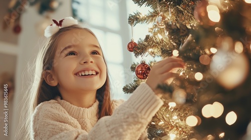 Joyful parent assists daughter in decorating christmas tree, celebrating festive moments together