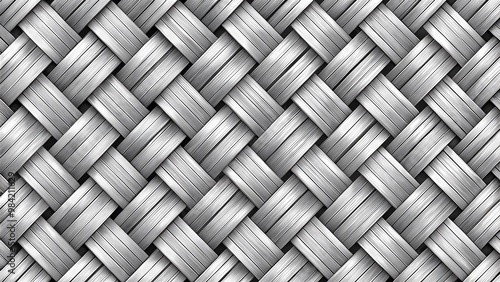 Interwoven cris cross metal fabric texture seamless blank white background. Abstract white background