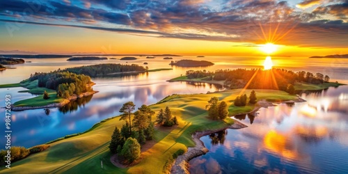 Majestic sunrise over the archipelago in Golf Bothnian Bay, Sweden, landscape, archipelago, Sweden, sunrise