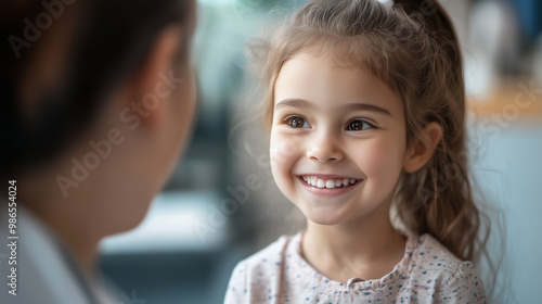 Dziecko z promiennym uśmiechem podchodzi do swojego lekarza, czując się komfortowo i swobodnie.