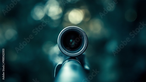 Close-up of rifle barrel in focus. Precision, shooting, firearm detail, sniper perspective, military equipment concept