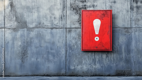 Czerwony znak z wykrzyknikiem, kontrastujący z szarym tłem, skutecznie przyciągający wzrok. Używany w miejscach, gdzie ważne jest, aby przekazać istotne komunikaty.