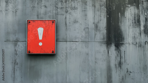 Czerwony znak z wykrzyknikiem, kontrastujący z szarym tłem, skutecznie przyciągający wzrok. Używany w miejscach, gdzie ważne jest, aby przekazać istotne komunikaty.
