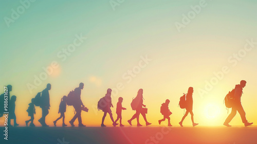 Families and caregivers support children as they walk towards school in the bright morning sunlight