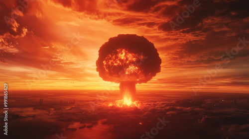 Chmura grzybowa unosi się na tle nieba, tworząc przerażający i zapierający dech w piersiach widok.