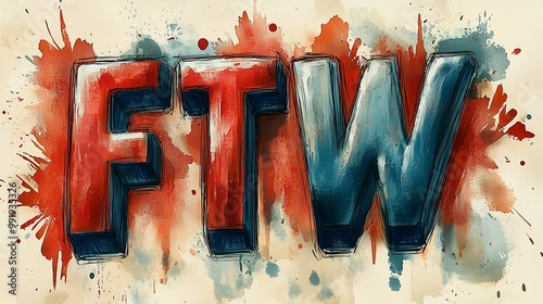 The image prominently displays the acronym 'FTW' in bold, colorful letters with a splattered paint style, capturing a dynamic and energetic artistic vibe.