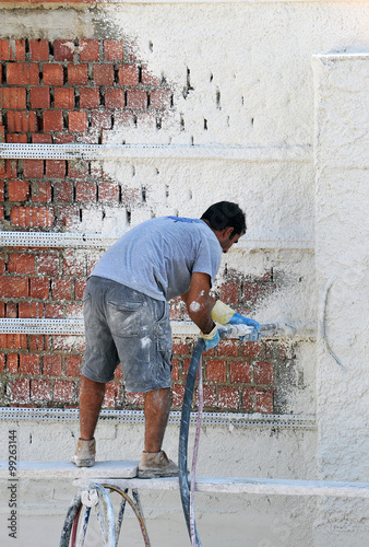 Plaster facade with mortar injected under pressure