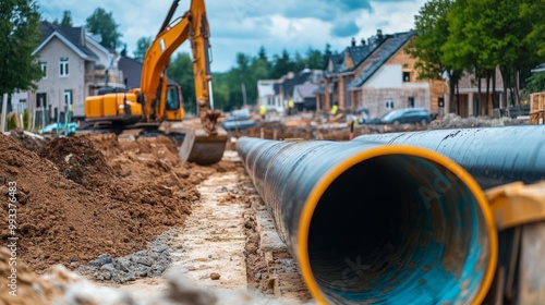 Sewage Pipes Being Installed in a New Residential Area