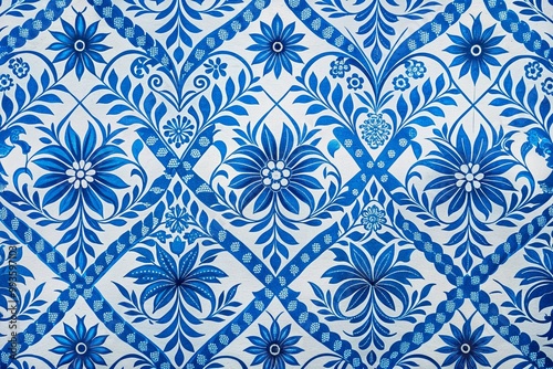 Traditional Bavarian Pattern in Blue and White for Textile, Wallpaper, and Graphic Design Use