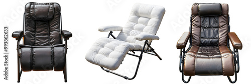 Zero gravity chair ergonomic support reclining position isolated on white and transparent background
