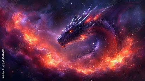 Ferocious Mystical Dragon Enveloped in Swirling Ethereal Energies