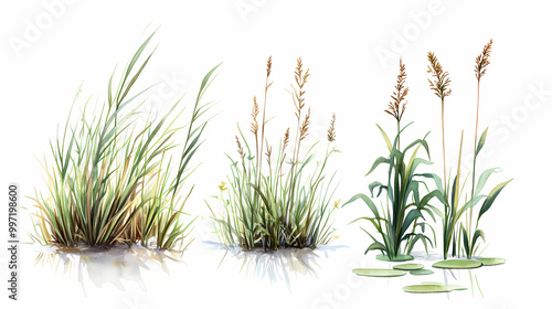 Sedge reeds swamp plant set, watercolor set. Wetlands. Illustration