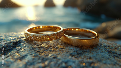 close-up shot of two gold wedding rings resting on textured fabric, symbolizing eternal love, commitment, and the sacred bond of marriage, highlighting the timeless significance of union