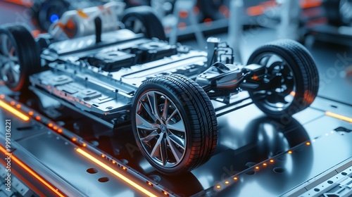 Close-up of a Car Chassis with Wheels and Underbody Components
