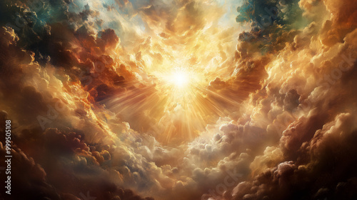 荘厳な光の降臨 - 天空を照らす宗教的な神聖な光景