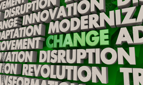 Change Innovation Disruption Transformation Word Collage 3d Illustration