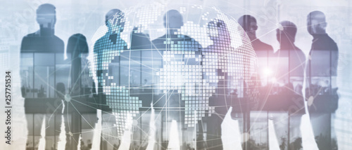 3D Earth hologram on blurred background.Global business and communication concept. Website header banner.