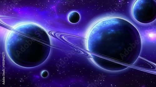 Purple Galaxy with Planets Clean Blank Canvas with Empty Space for Designs