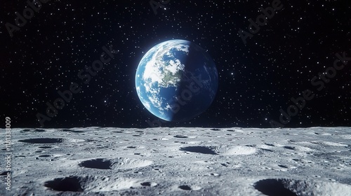 Serene Blue Earth View from Moon Surface, Blue earth moon surface concept.