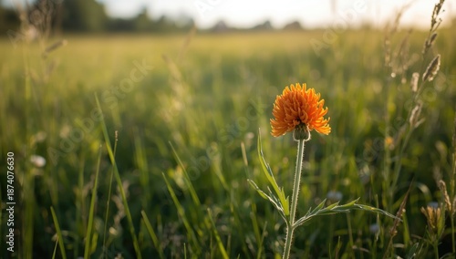 Orange Hawkweed flower blooming in a meadow in Maine, showcasing seasonal plant diversity for ecological preservation