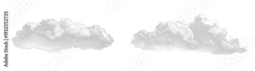 set of two fluffy white clouds in sky isolated on white or transparent png