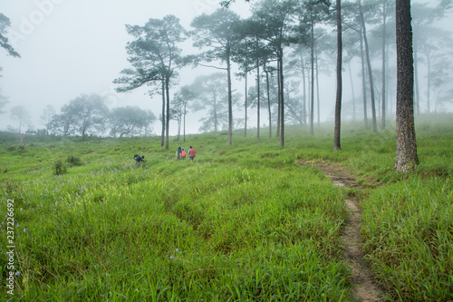 Group of Tourist walking on path in green meadow, At "PHU-SOI-DAO" mountains in THAILAND