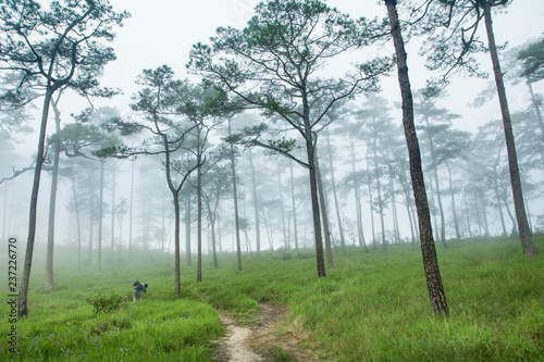 The man walking on path in green meadow, At "PHU-SOI-DAO" mountains in THAILAND