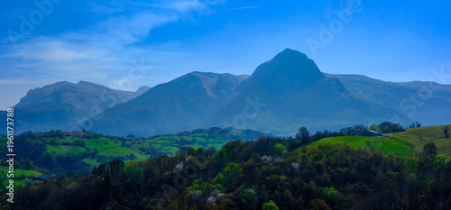 Txindoki in spring: the green meadows of Goierri, Aralar.