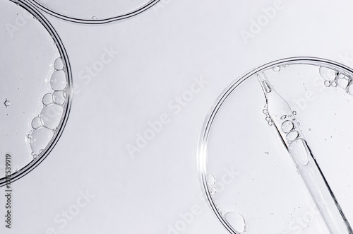 Liquid cosmetic product for the skin in a Petri dish. Copy space