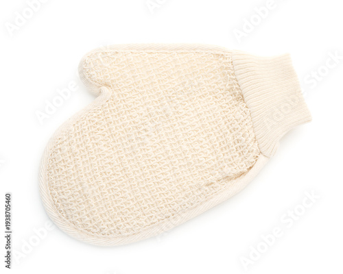 One shower mitten isolated on white, top view. Bathroom accessory