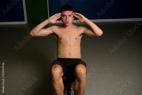 Nineteen year old teen boy doing situps