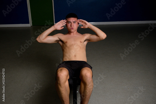 Nineteen year old teen boy doing situps