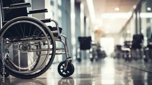 Wheelchairs in the hospital with copy space on area.