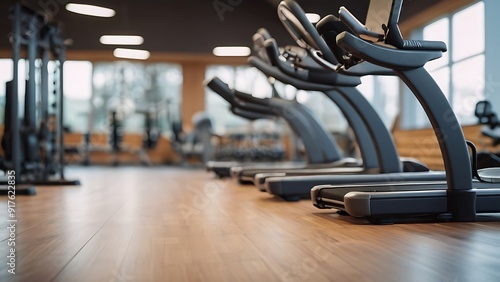 banner for athletic fitness equipment and a blurry background of a gym