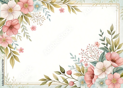 Elegant Floral Frame with Watercolor Style Flowers for Invitations and Greetings