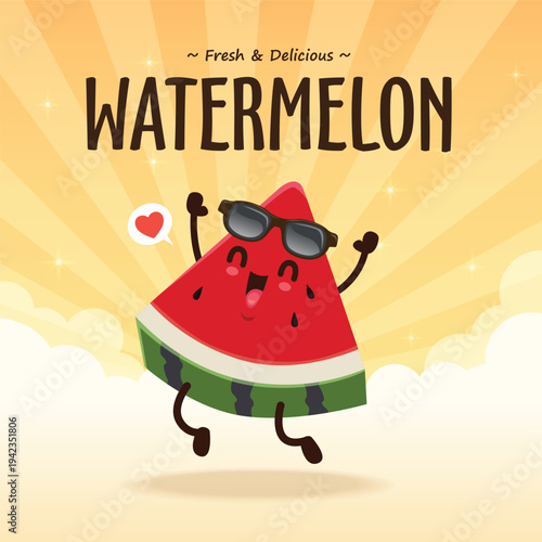 Vintage food poster design with water melon character