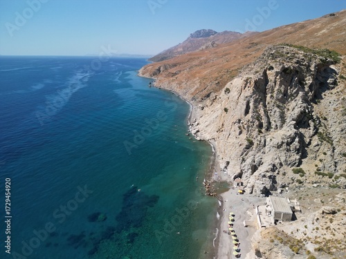 Wyspa Kos - Grecja - plaża z wodą termalną wydobywającą się z ziemi nagrana dronem w wysokiej jakości