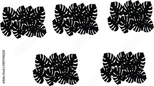 Black tropical monstera leaf silhouette collection in flat vector style isolated on white background for botanical design
