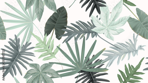 Botanical seamless pattern, various green leaves on light red, pastel vintage theme