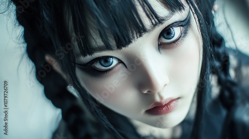 Character close face girl asian cute model black gothic make up halloween theme background wallpaper AI generated image