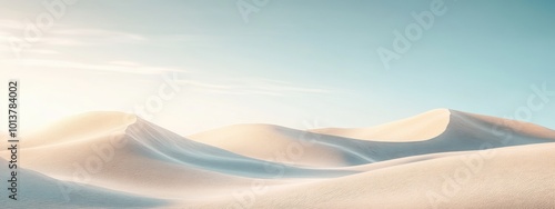 Serene Desert Dunes, Soft undulating sand forms under a pristine sky, embodying minimalist elegance and tranquility in a vast landscape.